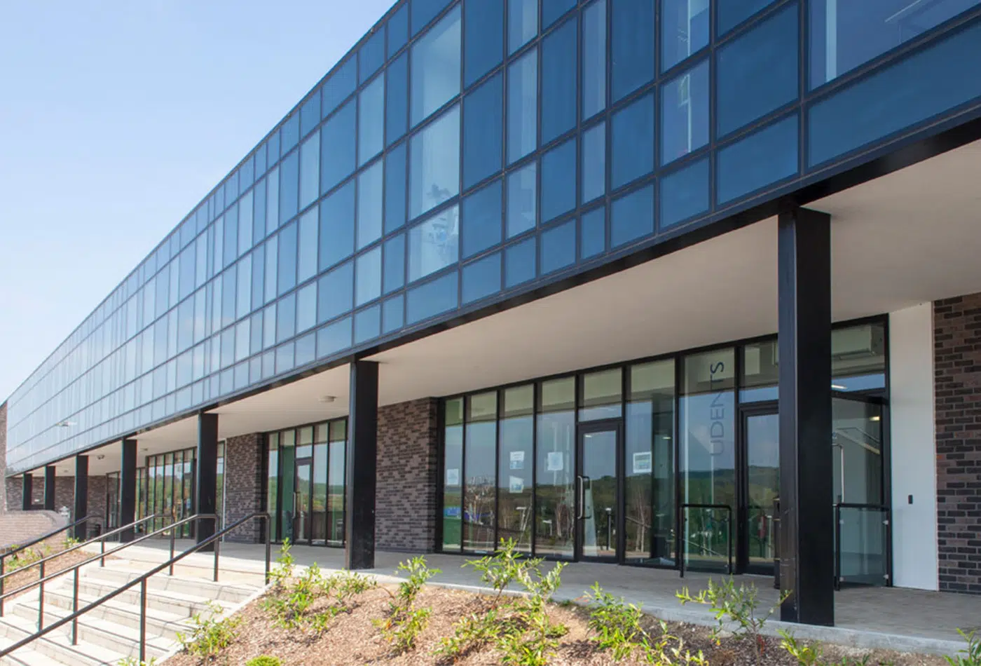 The glazing unit is deadload supported by the transom using a combination of setting blocks and glass supports, additionally the final aesthetics of the façade is enhanced by use of a flush seal between the glass units by means of a UV resistant weatherproofing silicone sealant.