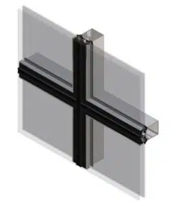 The grid construction replicates the AA®100 mullion drained system, so carries the same ease of installation. The flush external appearance is provided by specially manufactured insulated glazing units constructed with the use of structural silicone sealant and contain an integrated channel profile around the perimeter of the glazing cavity. Toggle clips positioned on the mullions and transoms locate into the channel profile to provide the mechanical retention to secure the pane to the curtain wall.