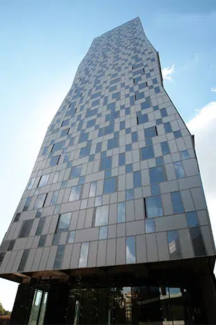 The AA®265 unitised curtain wall system is adaptable to any new construction project from two storeys upwards. The system is ideal for fast track installation where safe methods of work are required. The AA®265 has been exclusively designed and developed by Kawneer, with installation contracts undertaken in collaboration with its network of authorised dealers.