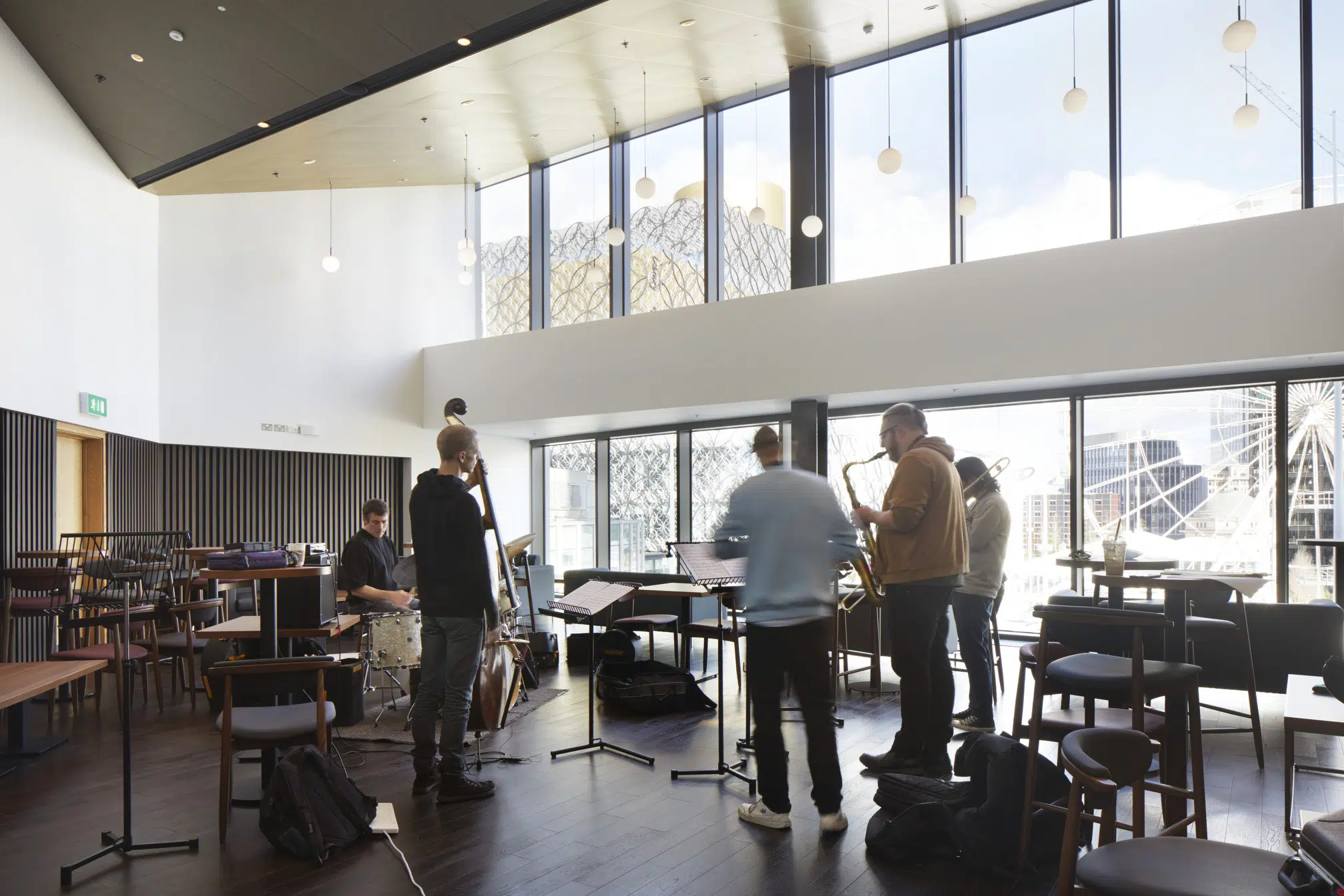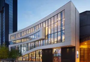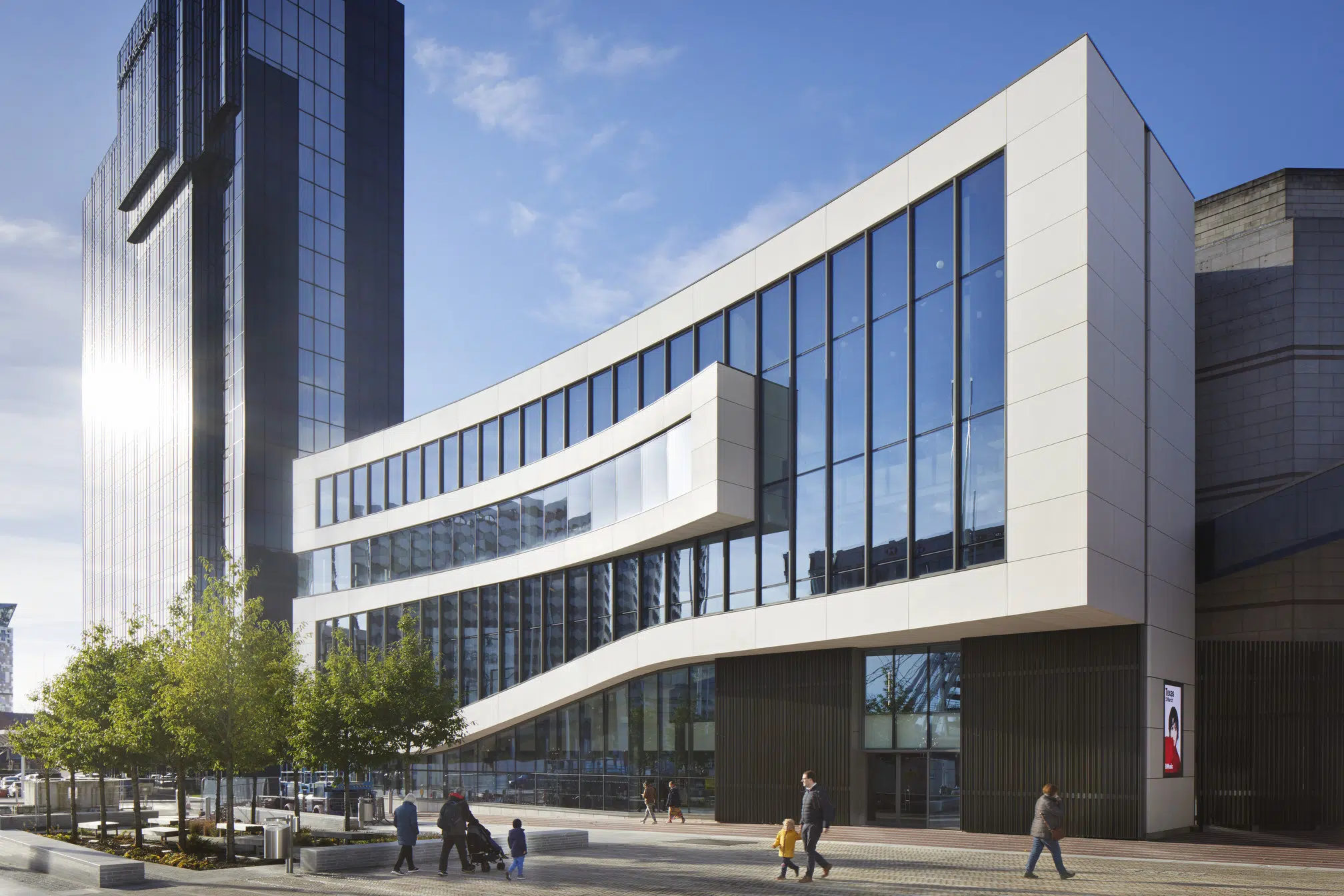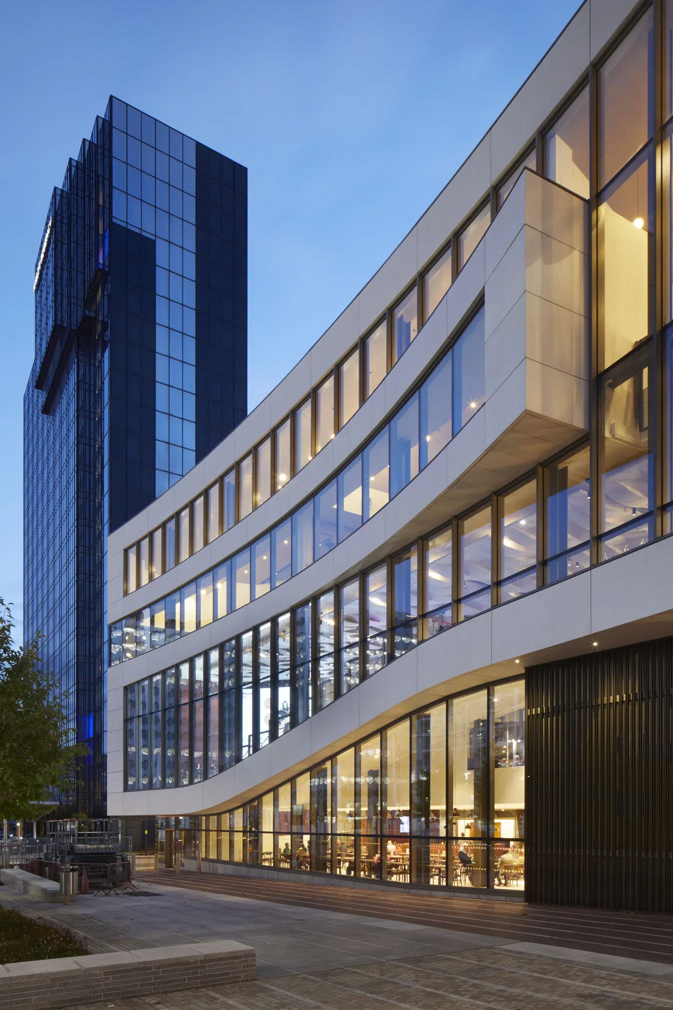 Perhaps the most striking element is the clever use of a glazed façade that further enhances the interaction between the interior and exterior, especially at night when foyer activities can clearly be seen from the Square.